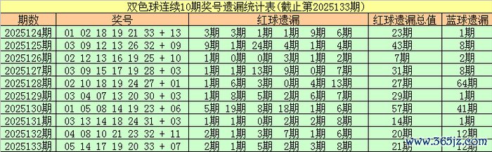 限度双色球第2025133期,最近10期红球遗漏总值辞别为:23期、43期、7期、31期、27期、29期、57期、14期、20期、21期,上期遗漏总期数偏高。