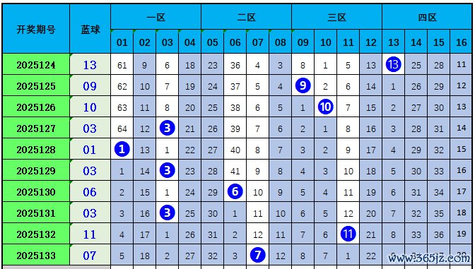 红三区(23-33):上期该区开出1个奖号33,近10期开出 14个奖号。总体较冷。本期保举该区奖号:25,29,33。
