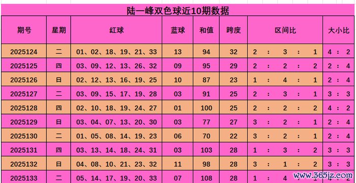 134期陆一峰双色球预测奖号:和值跨度大小比分析