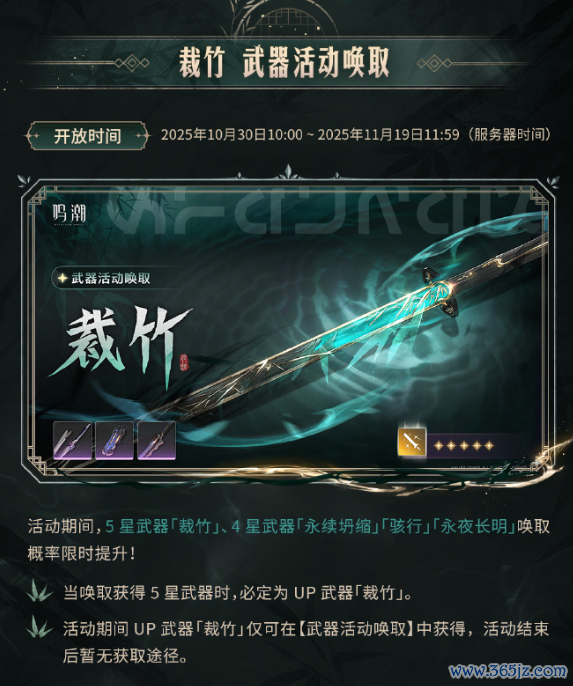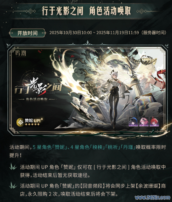 此外,10月30日还将同步开启五星扮装“赞妮”的UP卡池、五星火器“裁竹”与“焰光裁定”的浪漫火器池,以及全新潮汐续闻剧情「独在异乡为异客」。同期,“墨影凤歌”签到行径与战役拍照行径也将上线,参与即可领取丰富奖励。